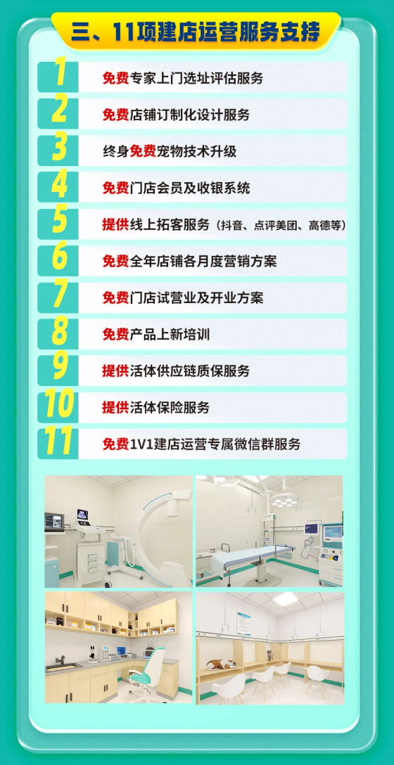 宠物行业一片向好,选择一个“实力强、经验足、口碑好”的大品牌作为创业助力器,降低投资风险,提升创业收益,抢占市场先机,开一家持续稳定的赚钱的宠物医院。